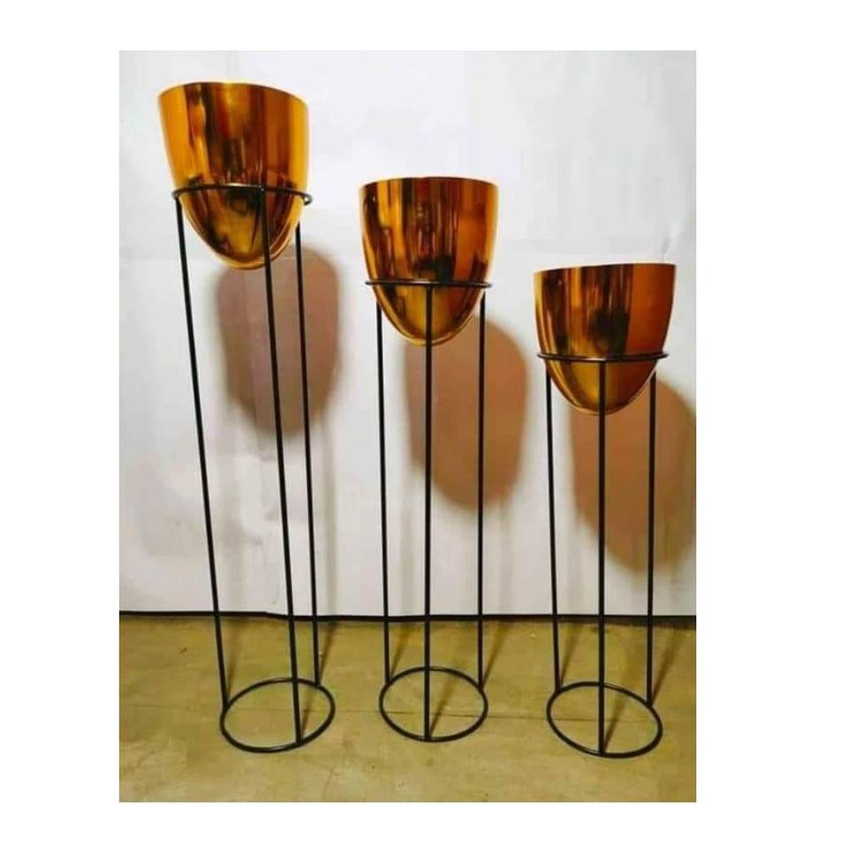 Customized Outdoor Gold Metal Planter Stand with Round Design Handcrafted for Home Decoration Low Price