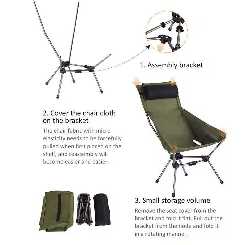 Customized Outdoor Portable Collapsible Camping Chair Heavy Duty High Back Folding Camp Moon Chair With Storage Belt