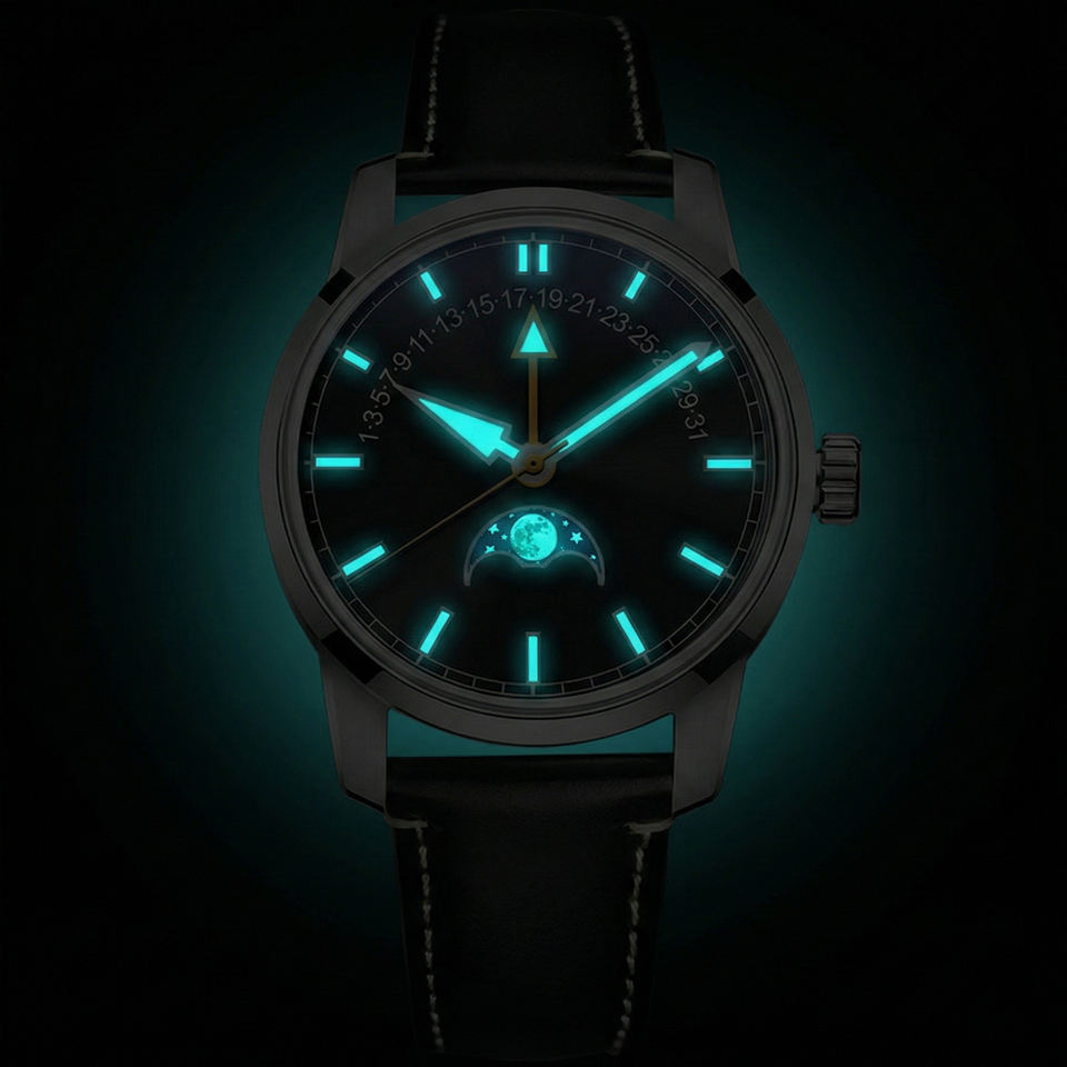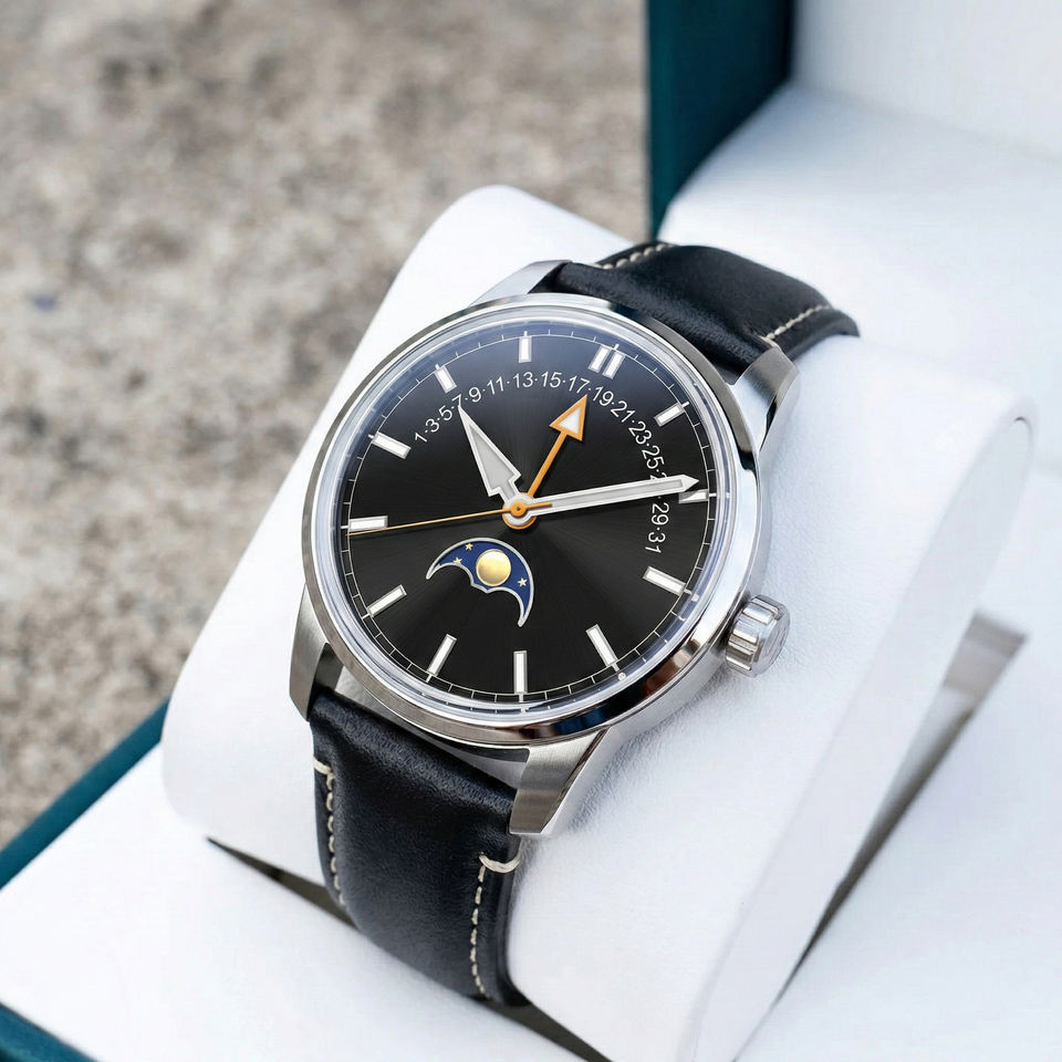 Customized Own brand Logo Mechanical Moon Phase business Wristwatch Automatic Retrograde hand movement Date Watches for Men