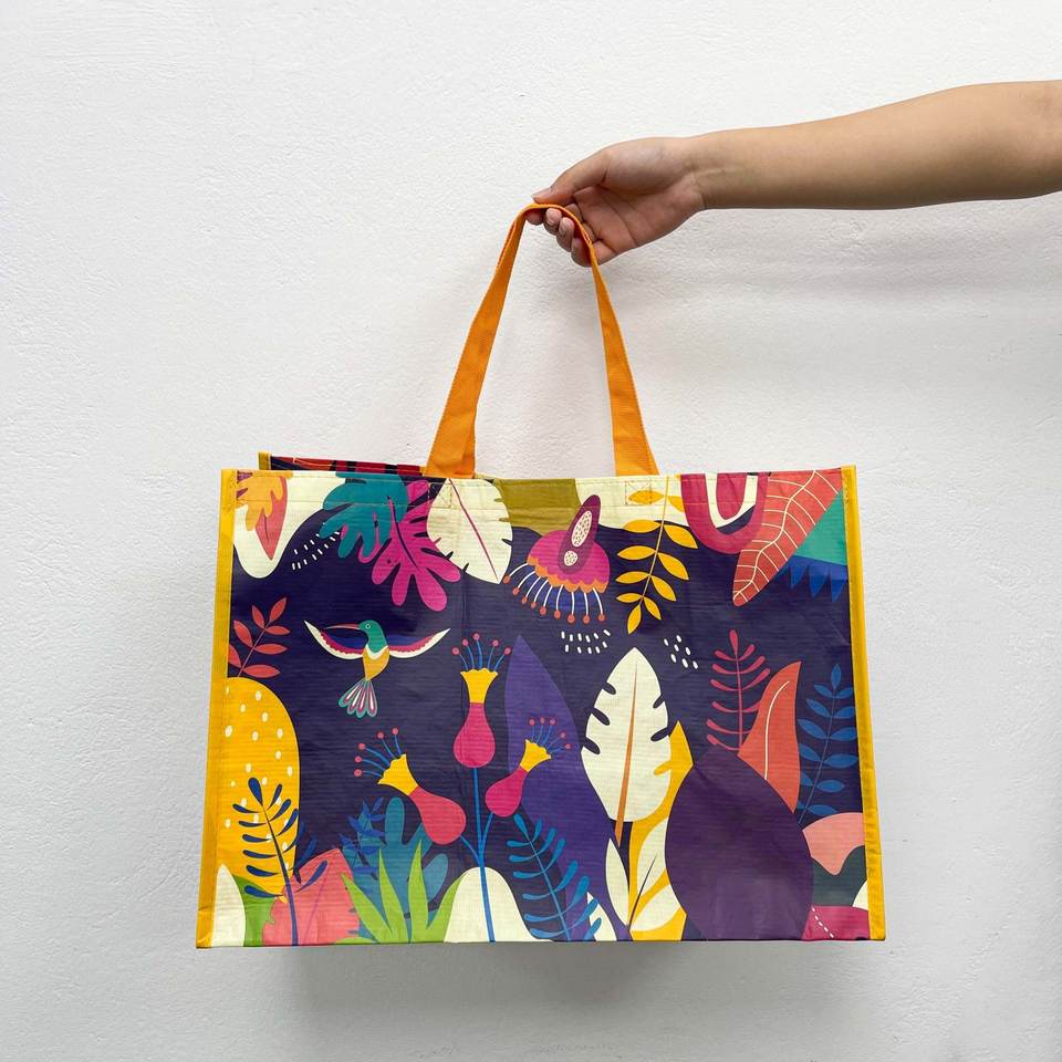 Customized Pattern Print Shopping Tote Bag Polyester RPET Recycled Waterproof Foldable Travel Sport Shopping Bag