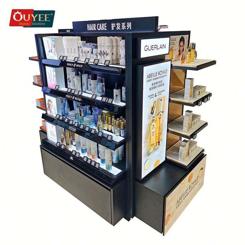 Customized Perfume Shop Display Rack Design Luxury Painting Finish Perfume Shelves Perfume Display Gondola With Light Box