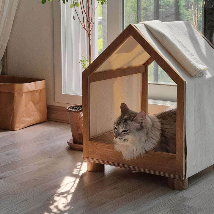 Customized Luxury Solid Pine Wood Pet House Furniture Comfortable Indoor Animal Bed with Cat House Frame
