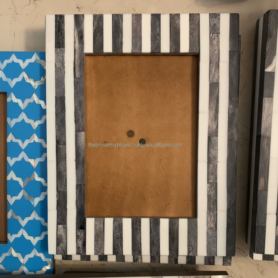 High Quality Customized Handmade Resin MDF Wood Photo Frame Stylish Bone Inlay Design for Home Decor and Business Gift