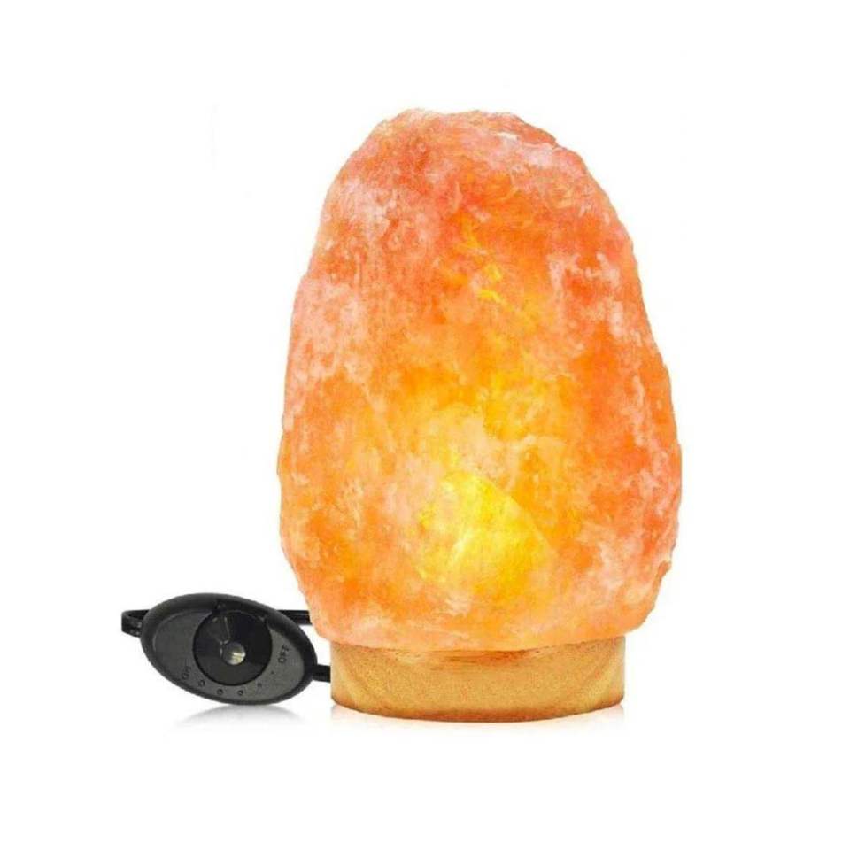 Customized Pink Himalayan Salt Lamp on Natural Carved Wooden Base Pyramid Style with Dimmer Switch for Side Table