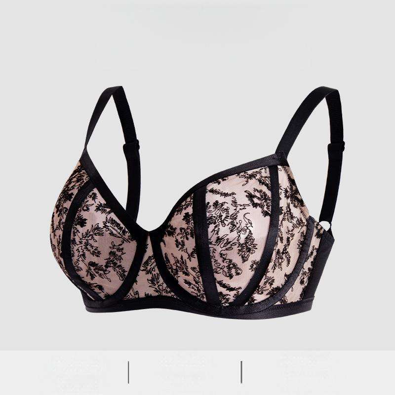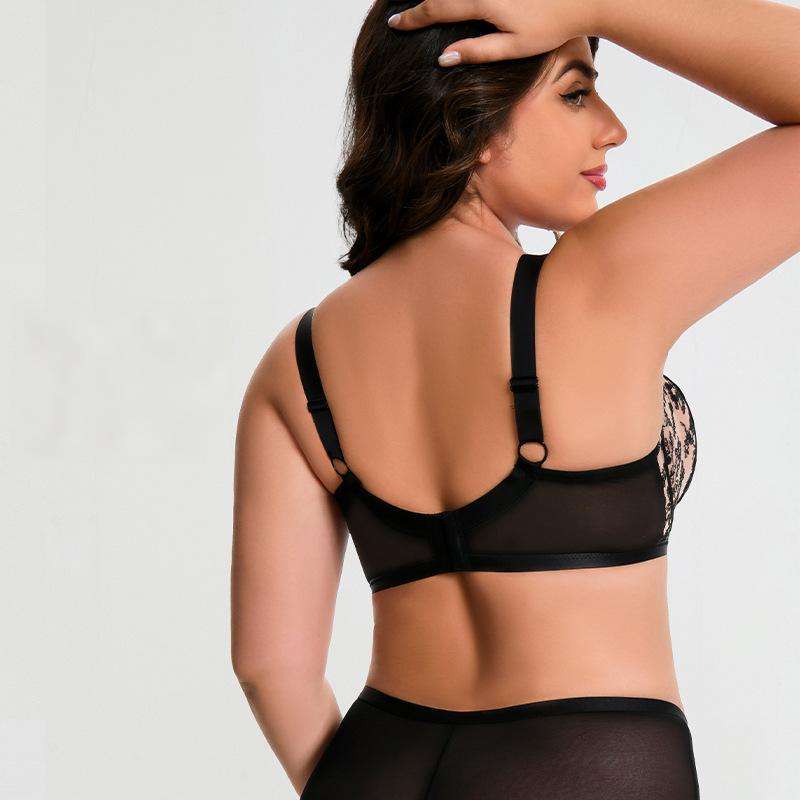 Customized Plus Size Lingerie Solid Pattern Wire-Free Mesh Lace Push-up Bra for Women Everyday Style Nylon Knitted Bra in Stock