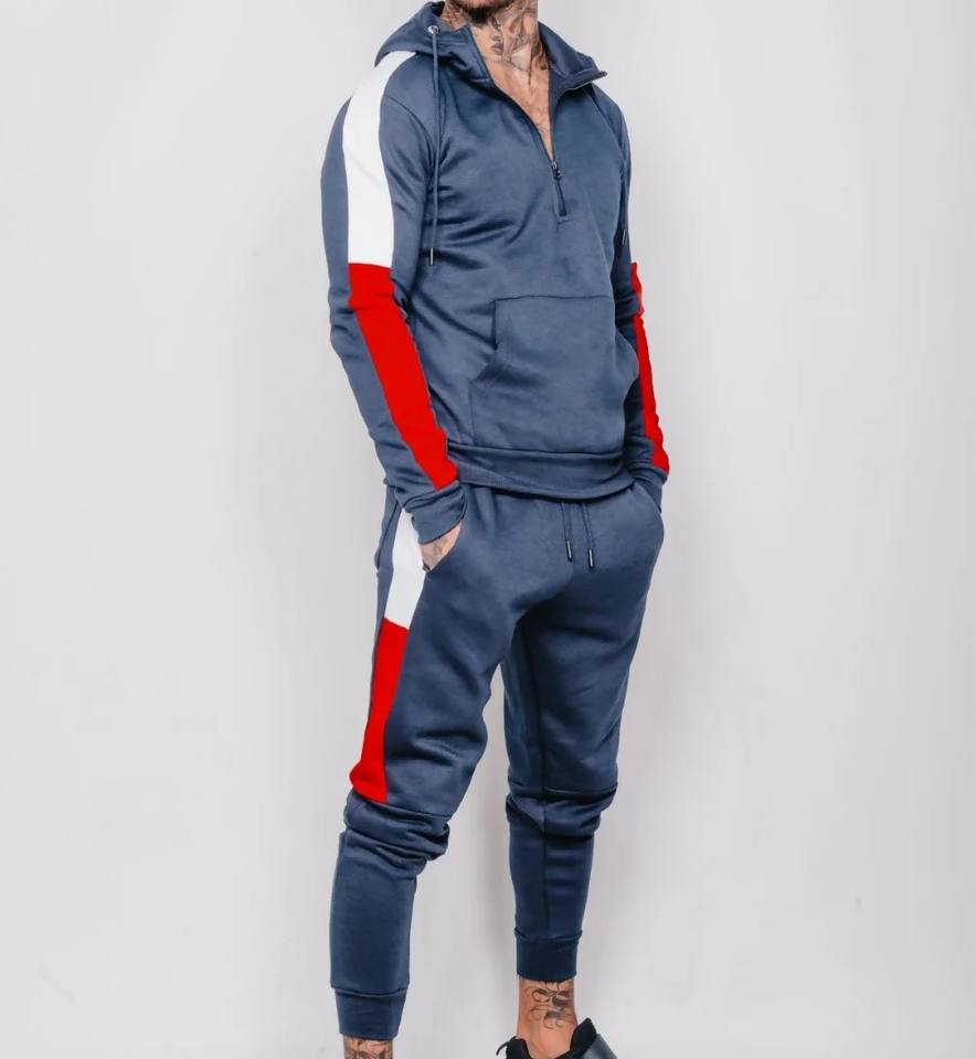 Customized Plus Size Men's Spring Compression Sports Tracksuit Set 100% Cotton Quick Dry Breathable Block Colour Pullover Hoodie