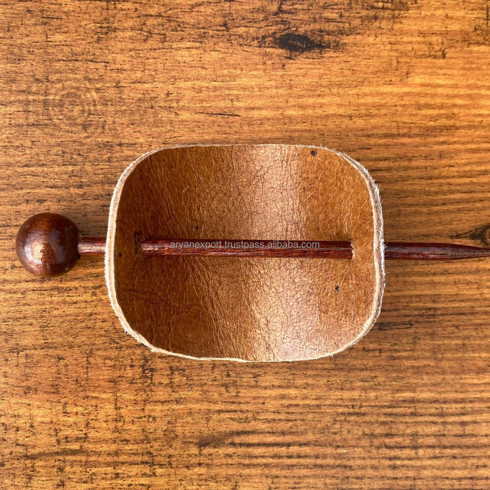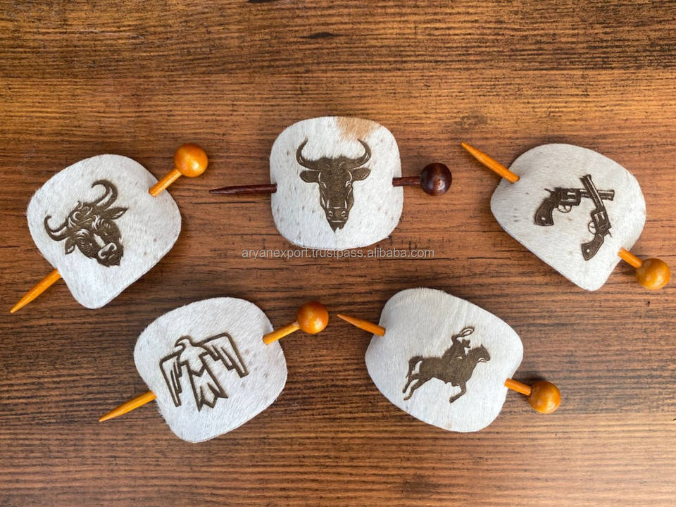 Customized Premium Laser Engraving Cowhide With Wood Slide Stick Oval Hair Pin Barrette Genuine Leather Lady Hair Stick Barrette