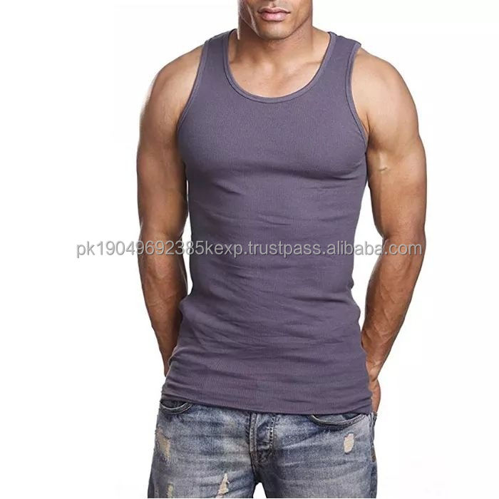 Customized Premium logo Summer Plain Ribbed Tank Tops High Quality Plus Size Gym Fitness t shirt Vest for Men