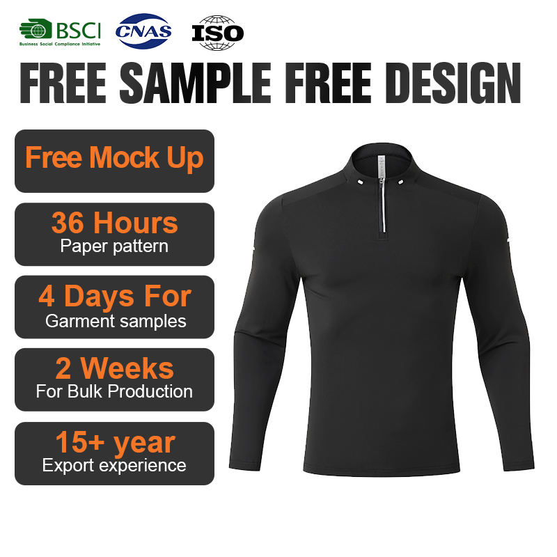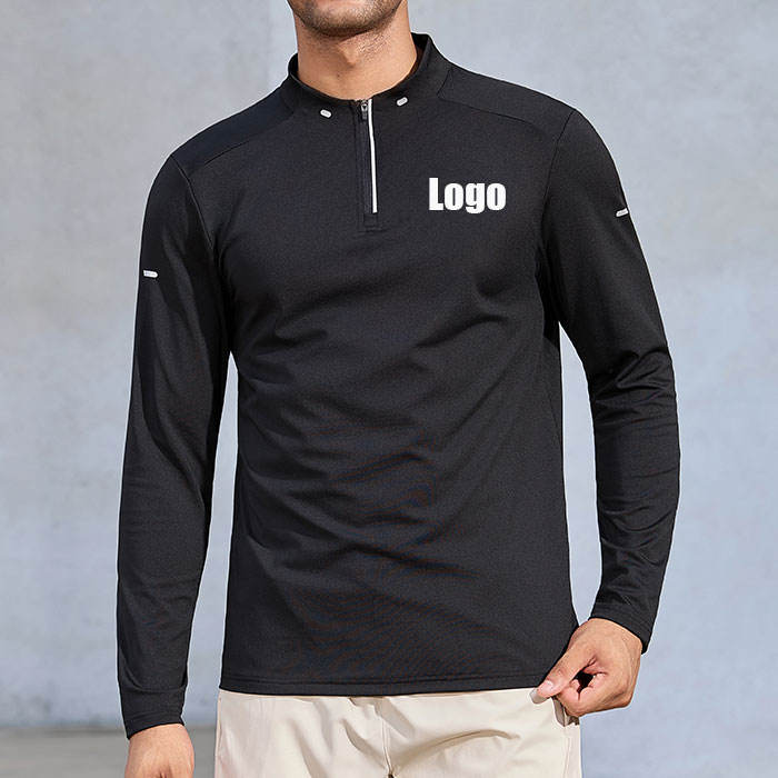 Customized Print Fitness Quick-Dry Half-Zip Shirt Knitted Activewear Sports Training Gym Wear Mens Long Sleeve Tshirts