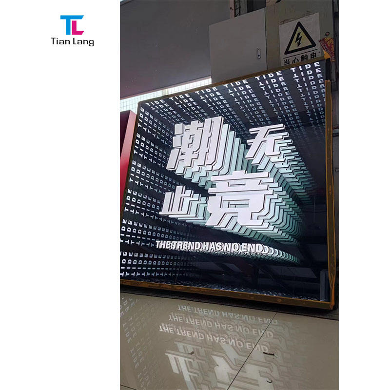 Customized RGB Lighting 3D LED Acrylic Letters Square Infinity Mirror Light Sign Color Change Glass Material Illuminated Sign