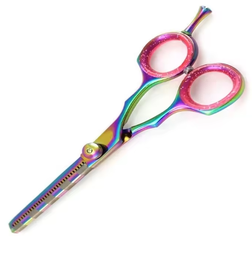 Customized Rainbow Color Hair Thinning Scissors Professional Barber Thinning Scissors With Removable Finger Ring