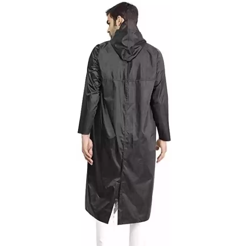 Customized Rainwear Men PU Waterproof Hooded Rain Coat Windproof Breathable Black Color Raincoat