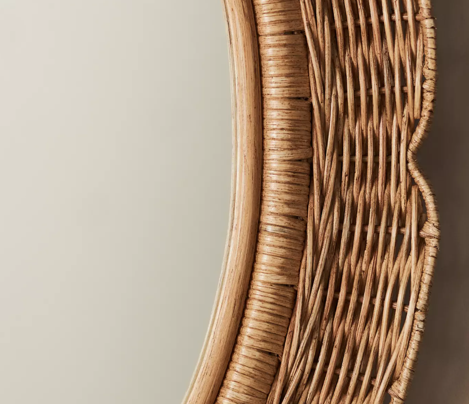 Customized Rattan Wall Mirror Handmade Wicker Weave Frame Boho Decorative Natural Mirror for Home Living Room Bedroom