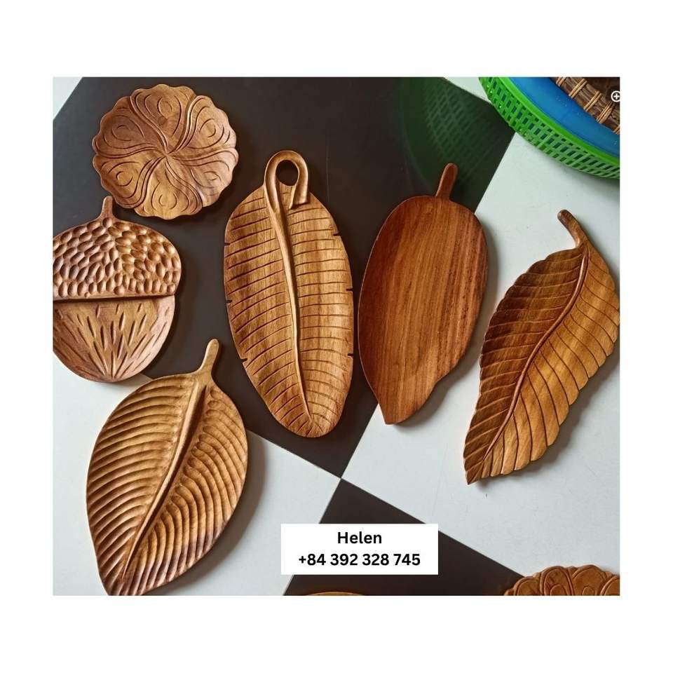 Customized Real Wood Leaf Plate Wooden Engraved Tray Containing Salad Serving Plate Attractive Kitchenware Table Plate