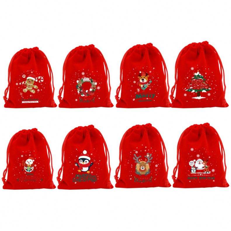 Customized Red Velvet Drawstring Packaging Pouch Bag Biodegradable Jewelry Wallet Belts Christmas Candy Gift Pack Reusable