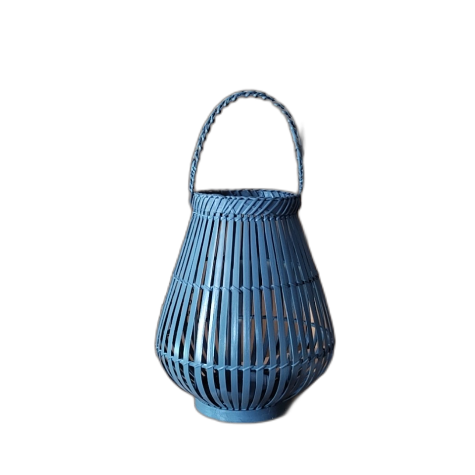 Customized Retro Rustic Blue Candle Lantern with Handle Modern Japanese Chinese Traditional Craftsman Style Design