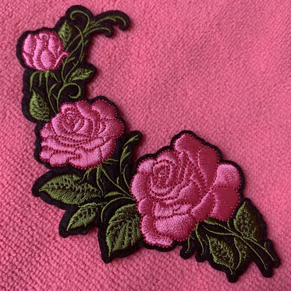 Customized Rose Logo Embroidery Applique Patch, Lovely Design Embroidery Flower Logo Badge for Overcoats