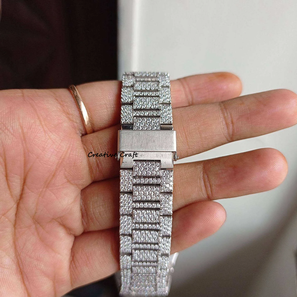Customized Round Mens Moissanite Diamond Stainless Steel Hip Hop Style Mechanical Pointer Dial Watch for Men