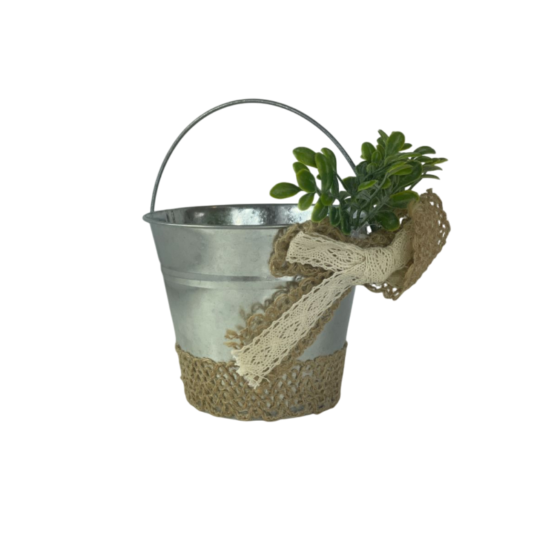 Customized Rustic Farmhouse Galvanized Metal Pail Bucket With Jute Rope Wrapped Rim Decorative Tin Pail Vase For Garden Decor
