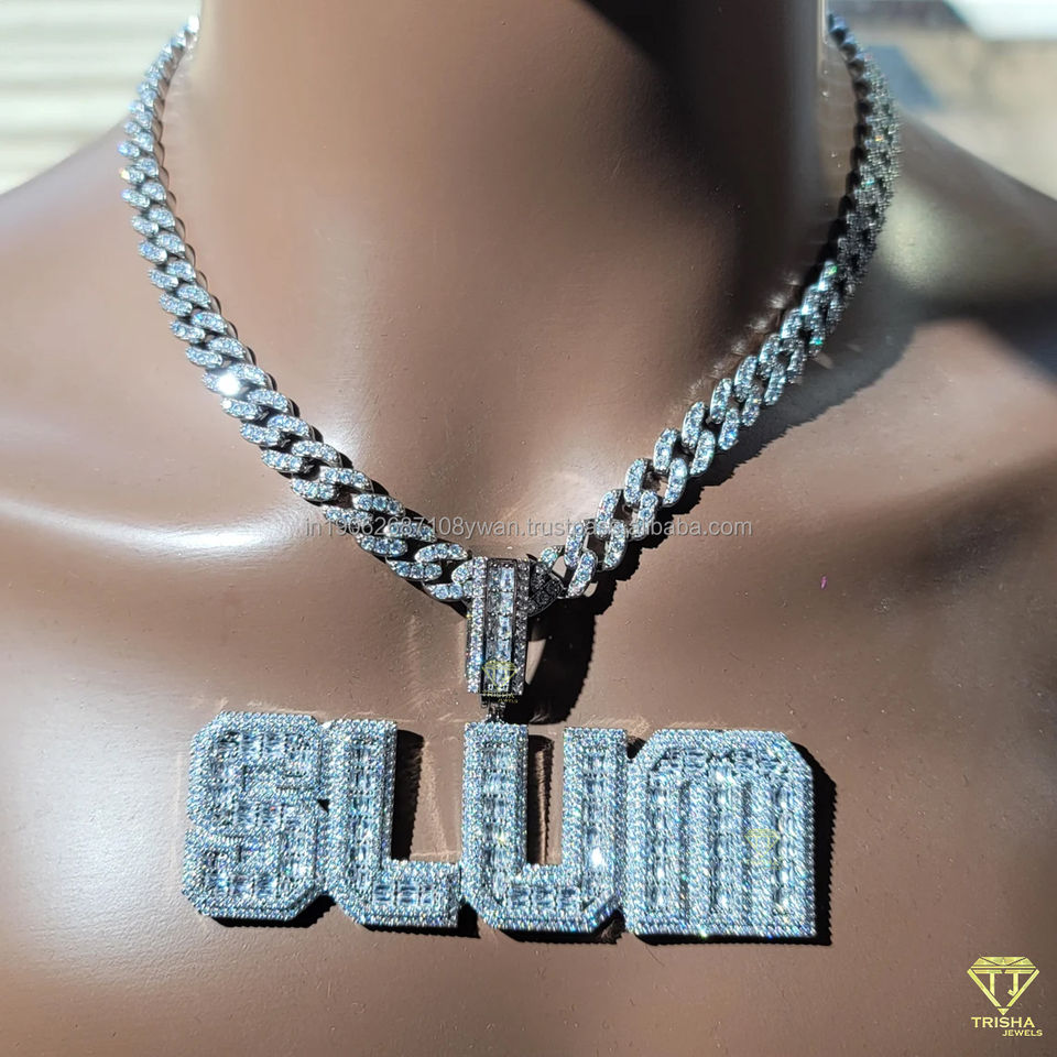 Customized SLUM Pendant Necklace VVS Lab Grown Diamond Fully Iced 925 Silver Cuban Link Hip Hop Statement Jewelry
