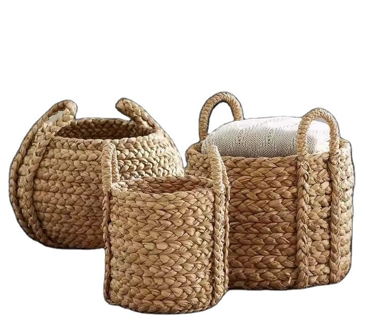 Customized Seagrass Woven Baskets Latest Collection Decorative Rattan Water Hyacinth Clothing Laundry Hamper Home Organizer