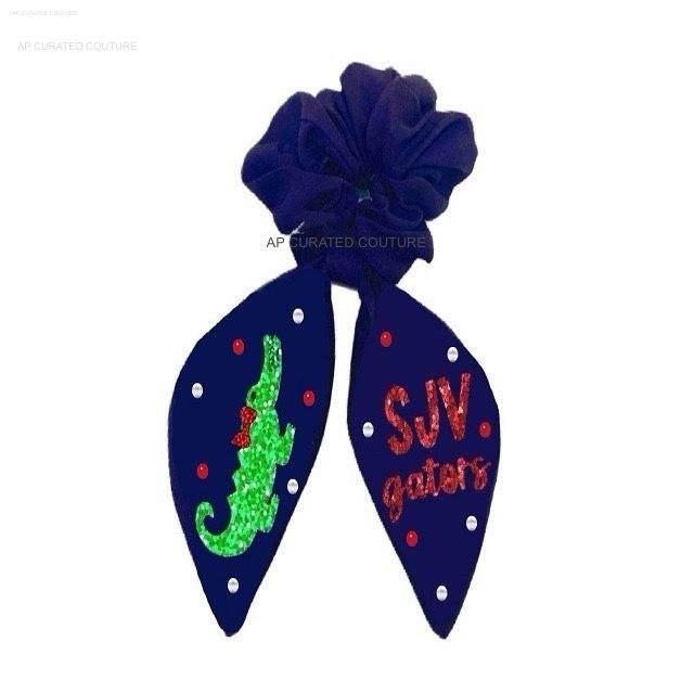 Customized Seed Beaded Hair Scrunchie Stylish Cotton Fabric Beaded Alligator for Game Day for Girls and Women