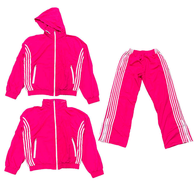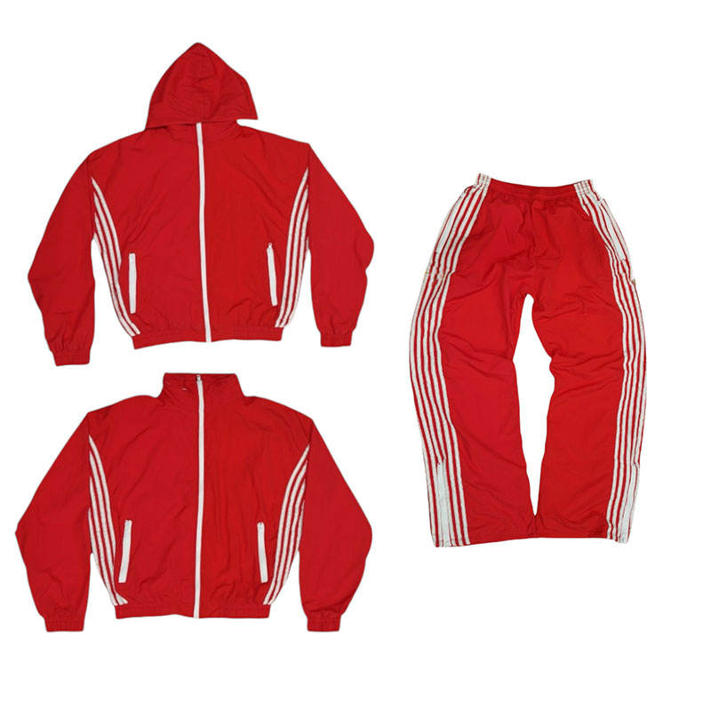 Customized Sides Strips Nylon Tracksuits Unisex Over Sized Suits Inside Thermal Warm Lining Material Hidden Hood Collar Style