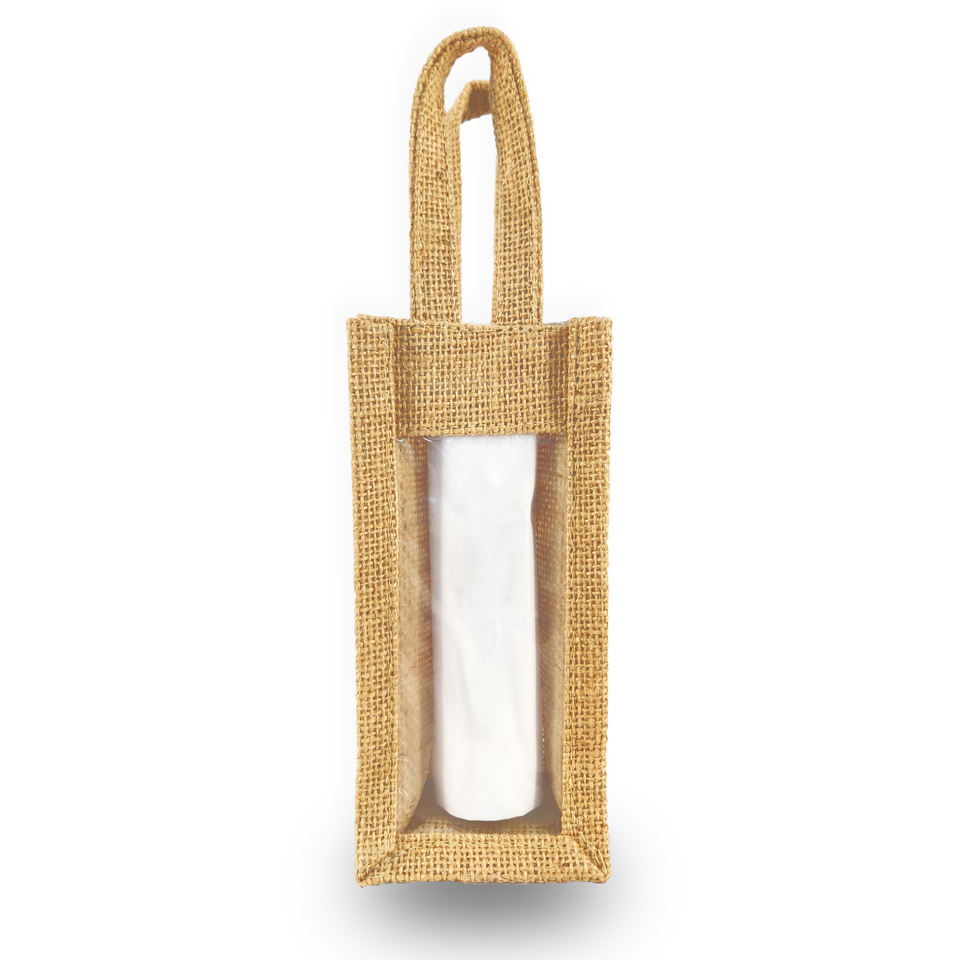 Customized Single Jute Bottle Tote Screen Printed Logo PP Packaging-Promotional Wine Beer Shopping Gift Bag