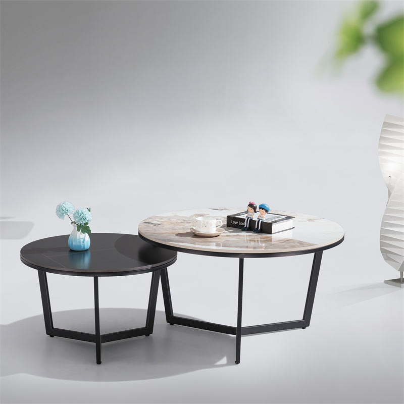 Customized Size and Color Modern Sintered Marble Stone Slate Tabletop High Low Round Tea/Side/End/Coffee Table Set of 2
