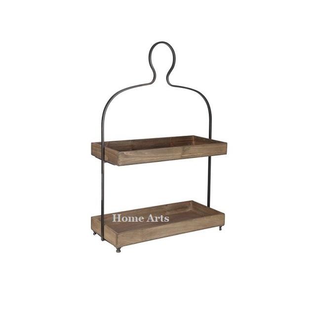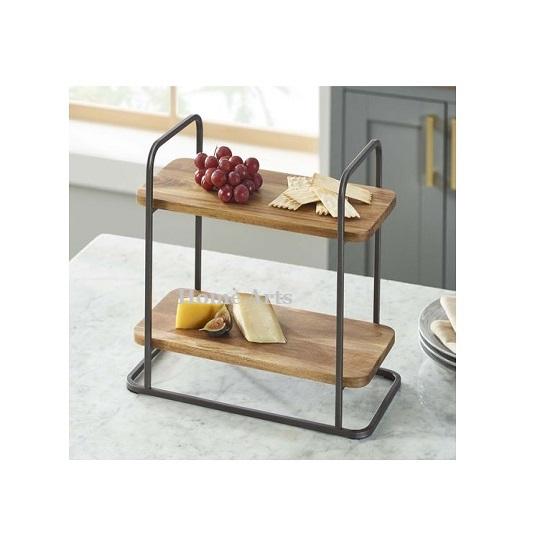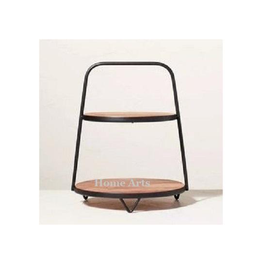 Two Tier Wood And Iron Cake Server Customized Size Round Shape Cake Stand From Manufacturer In India