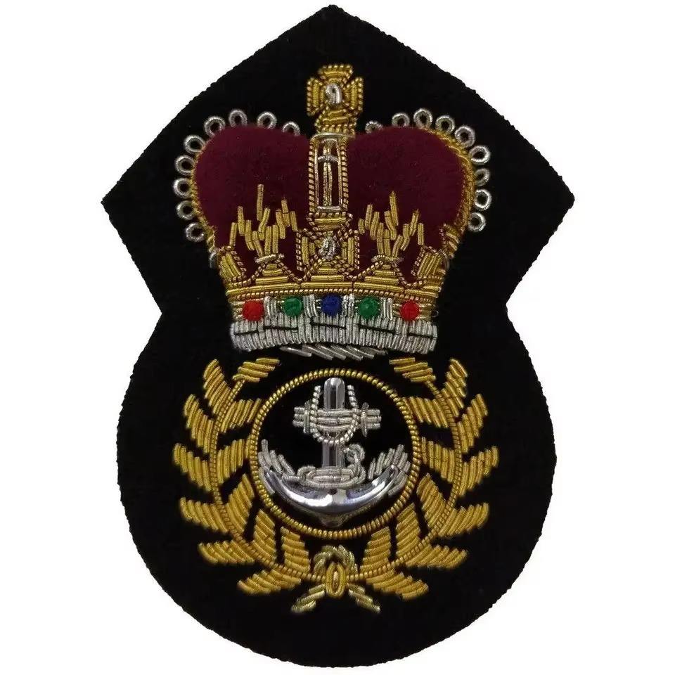 Customized Size Hand Embroidered Fabric Epaulets 3D Design Pin Badges with Magnet for Hats & Blazers Felt Bullion Wire Included
