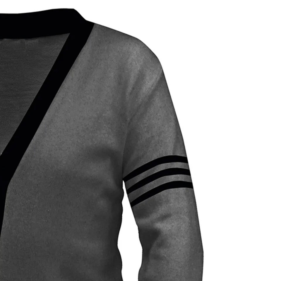 Customized Size & Logo Gray & Black Sororities Winter Patchwork Embroidery Knitted Cardigan Sweater