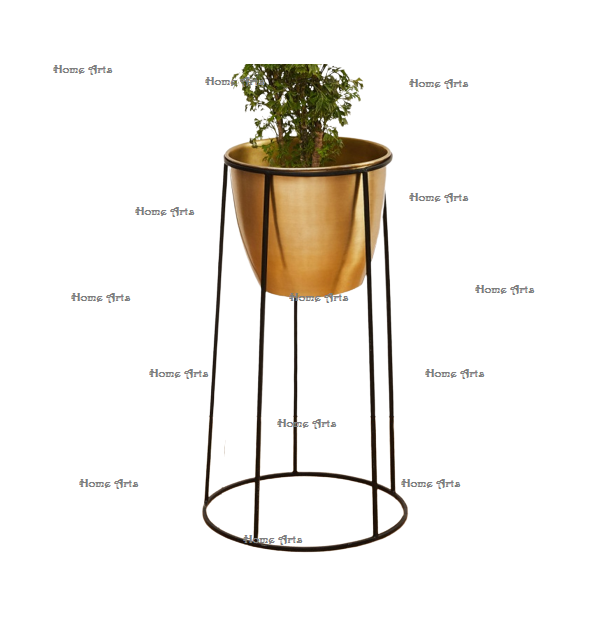 Customized Size Round Shape Metal Plant Pot With Iron Black Stand Deluxe Quality Planter At Acceptable Price