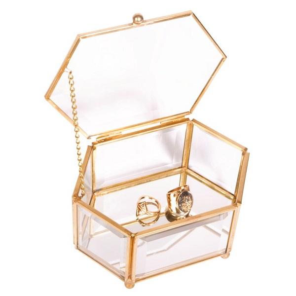 Customized Size Rectangle Shape Metal Jewelry Box Glass Jewelry Box High Quality Handmade Decorative Tabletop Glass Box
