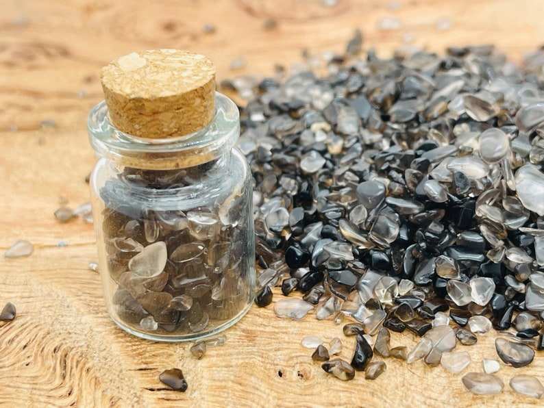 Customized Size Smoky Quartz Natural Rough Crystal Chips Untreated Loose Gemstone in Mini Bottle Bulk