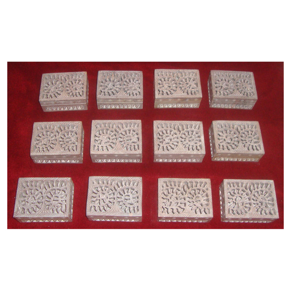 Customized Size Soapstone Carving Box Rectangular Shape Storage Organizer For Sale Highly Crafted Floral Design On Jewelry Boxes