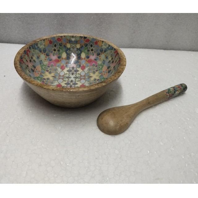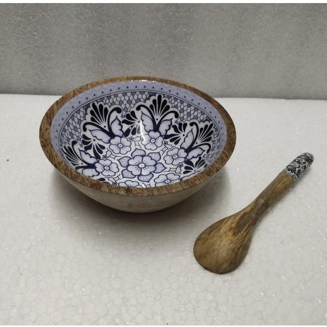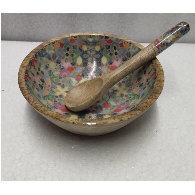 Customized Size Wooden Floral Snack & Salad Bowl Platter Multicolor Enamel Printed Top Selling Home & Hotel Usage Serving Bowl