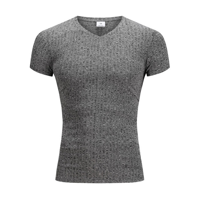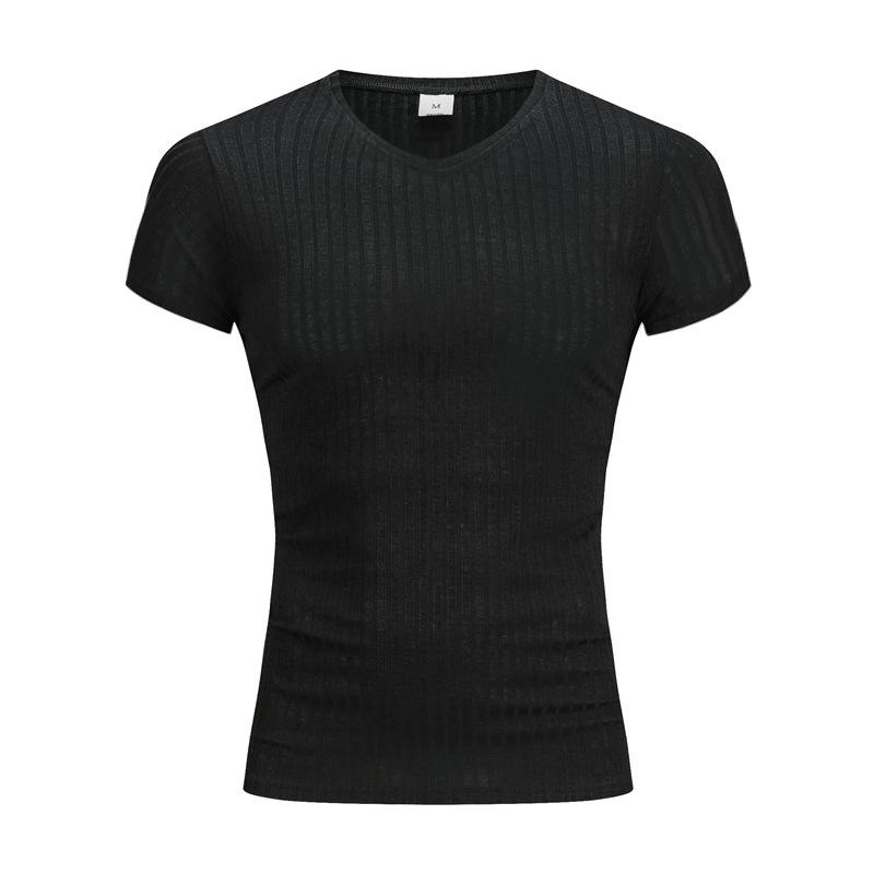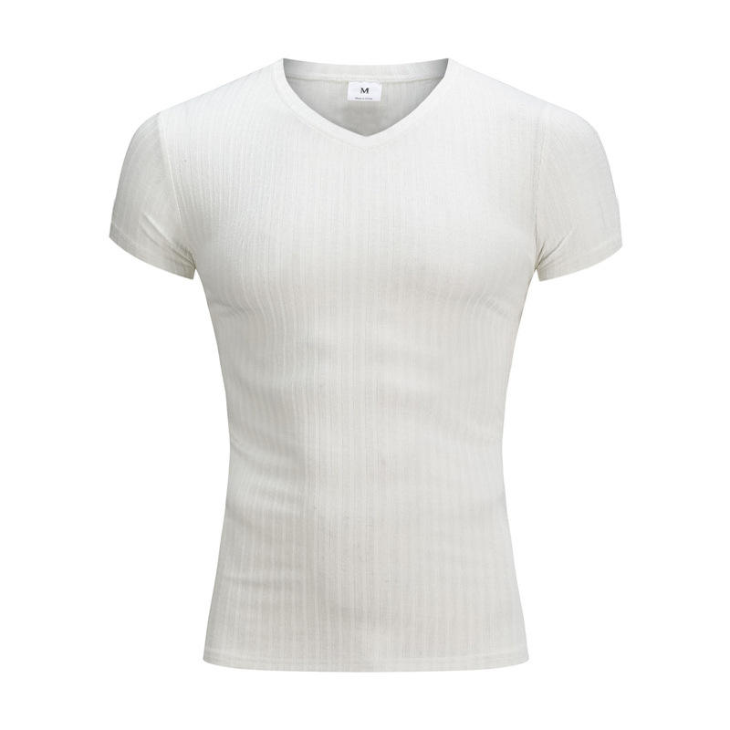 Customized Slim Fit Cotton Short Sleeve V-Neck T-Shirt Men's Fitness Sports Striped Top Knitted Fitness Tee