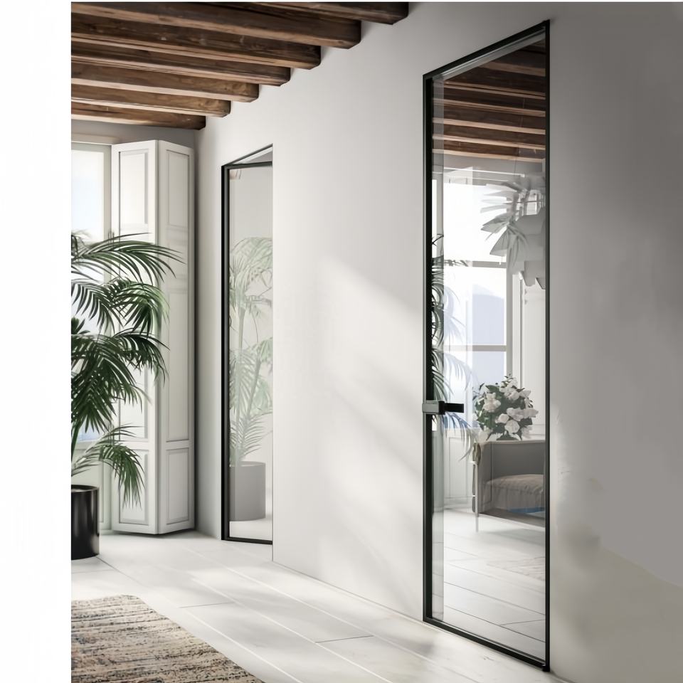 Customized Slim Narrow Aluminum Frame Double Tempered Glass Door Interior Swing Casement Aluminum Toilet Door for Sale
