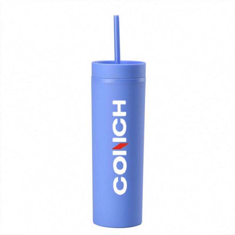 Customized Slim Skinny Acrylic 16Oz Plastic Reusable Tumbler Cups With Straw