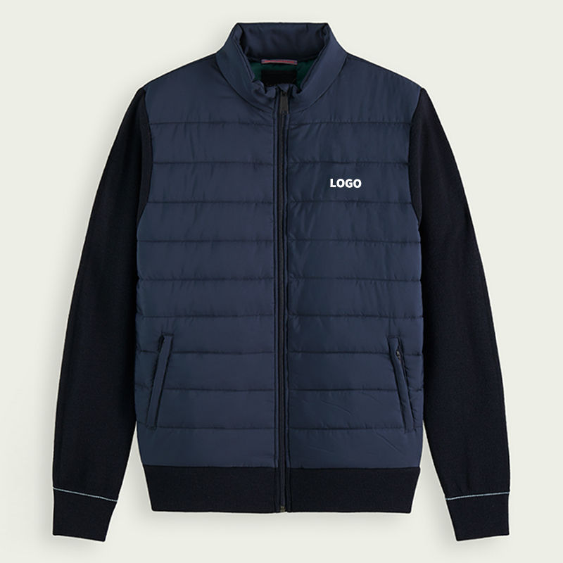 Customized Sport Camouflage Bomber Jacket with Front Knitted Sleeve Men Quilted Pullover Outdoor Spring Jacket
