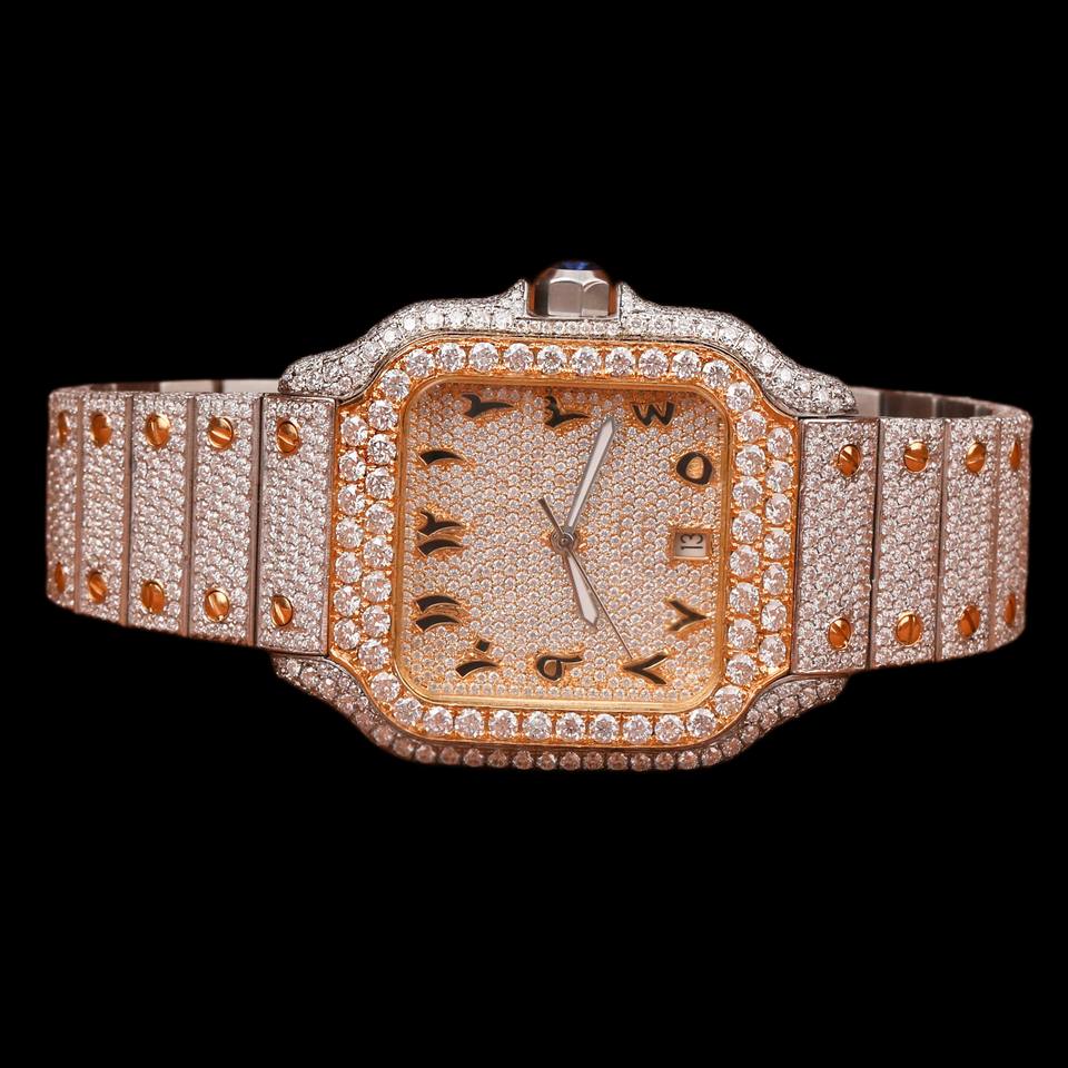 Customized Square Case Roman Numerals Dial Quartz Movement Arabic Numerals Antique Man's Wear Collection Hip Hop Watch
