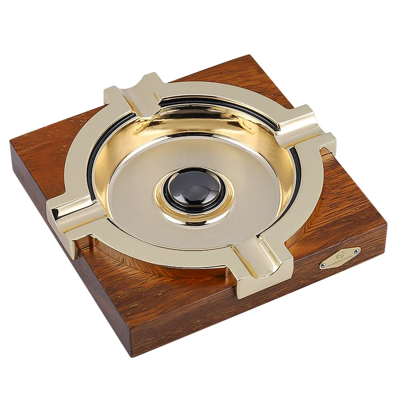 Customized Square Wood and Metal Ashtray with Classic Brown Human Cars Design for Home Office or Hotel Bar Tabletop Decor Bowl