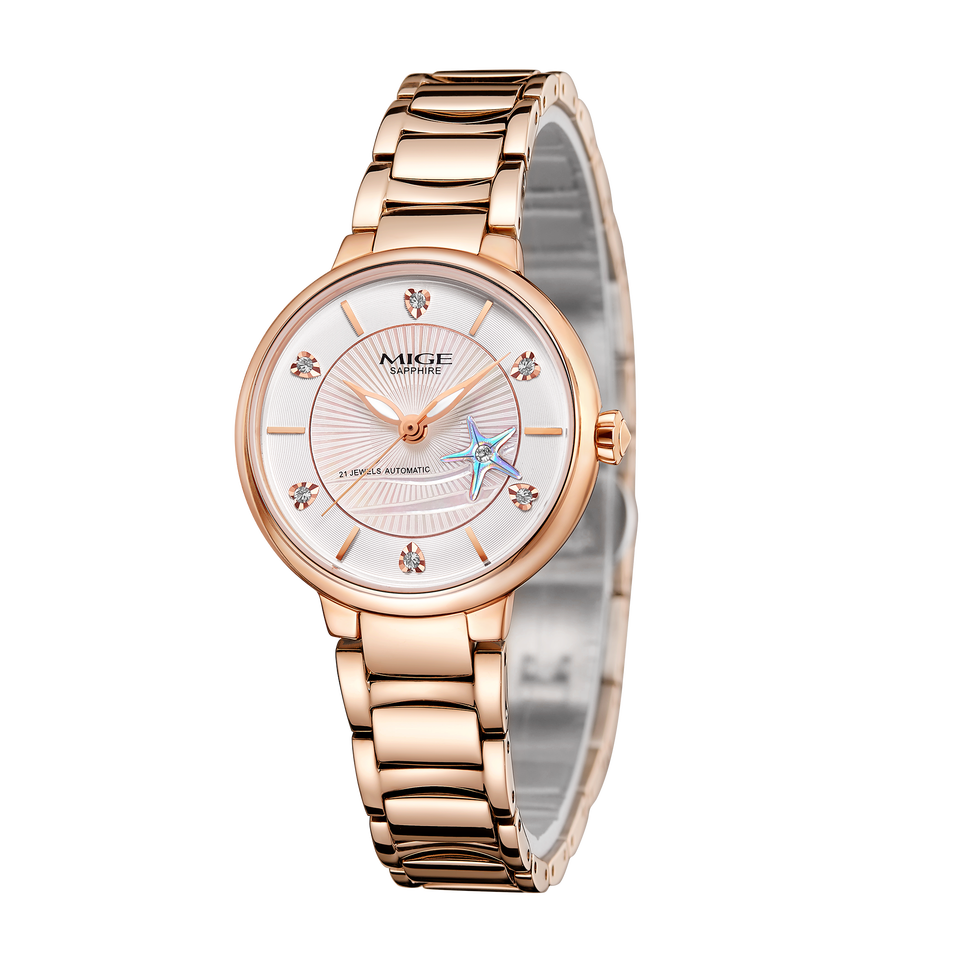Customized Stainless Steel Round Dial Auto Date Fashion Women Mechanical Watch