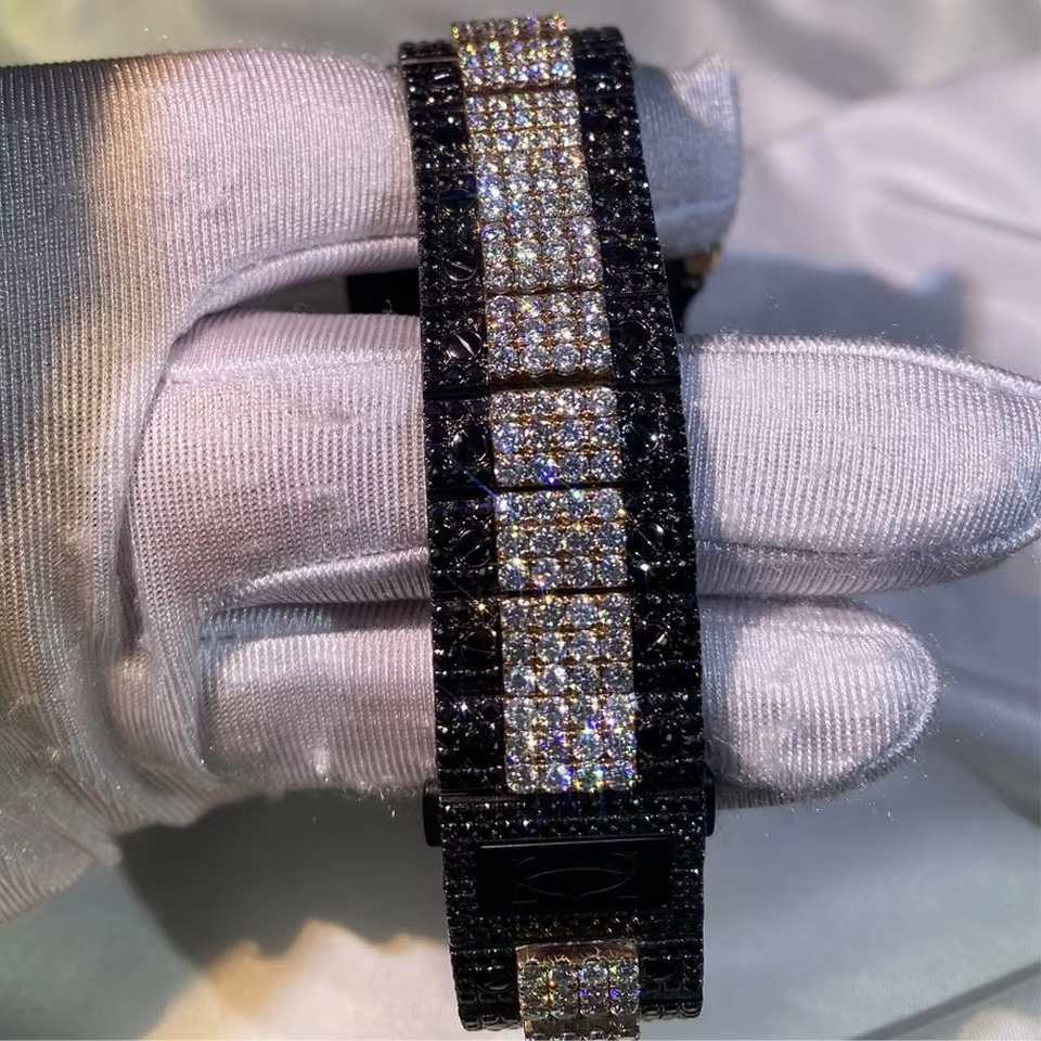 Customized Stainless Steel White Gold Sport Wrist Watch Moissanite Diamonds Handmade Hip Hop Style 21mm Width Glass Dial Latest