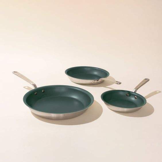 Customized Stainless Steel Wok Three Piece Set Threelayer Stainless Metal Honeycomb Non-stick Cookware Set Hybrid Fry Pan Set