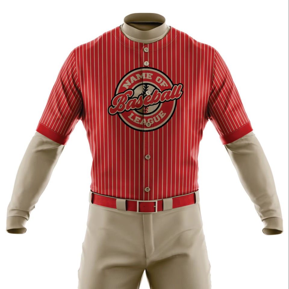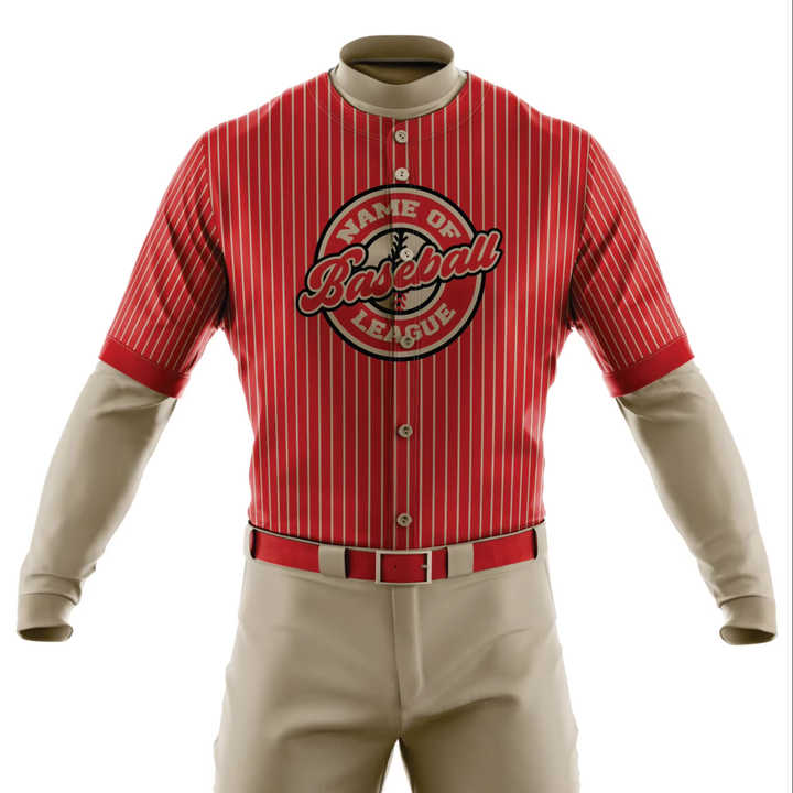 Customized Striped Red Zep Leather Adults Children's Baseball Uniform Full Button Sublimation Embroidery Jersey Pant Set Men