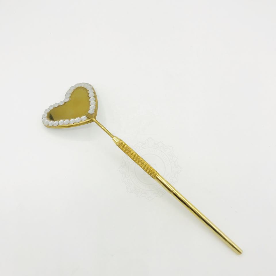 Customized Sustainable Gold-Plated Stone Mirror Eyelash Extension Tool Portable Heart-Shaped Beauty Makeup Mirror