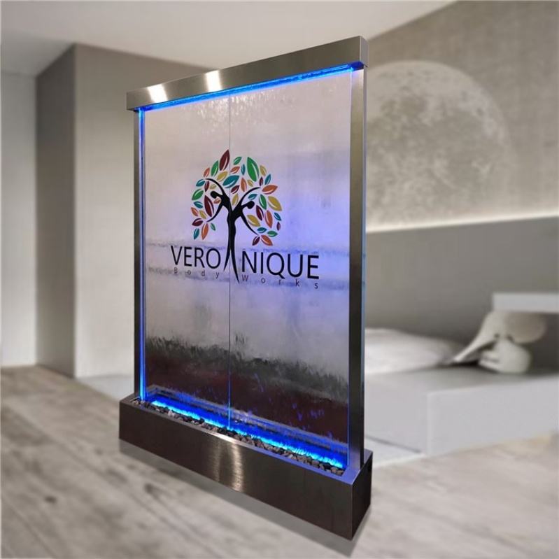 Customized Tempered Glass Indoor Floor Water Fountain Wireless Remote Color Changing Lighting for Hotel Lobby Home Decor Feng