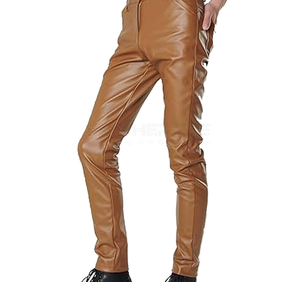 Customized Top Design High Quality Men Leather Pants Men Winter Wear Outdoor Leather Pants in Stock
